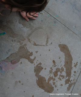 Making patterns with foam pieces they stick to the side of the paddling pool |